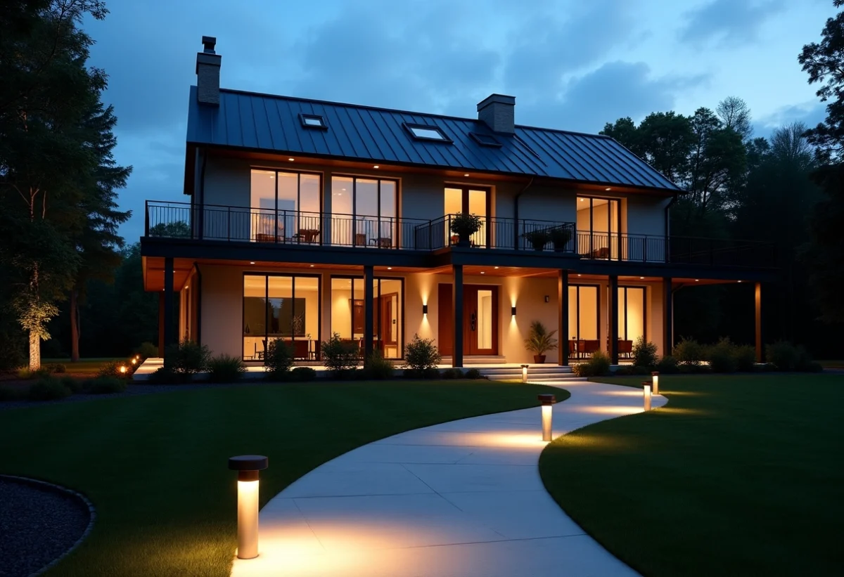 Terrasse : L’éclairage d’une terrasse nécessite entre 1000 et 1500 lumens. Cela permet de créer une ambiance conviviale tout en assurant une luminosité suffisante pour les repas et les moments de détente.